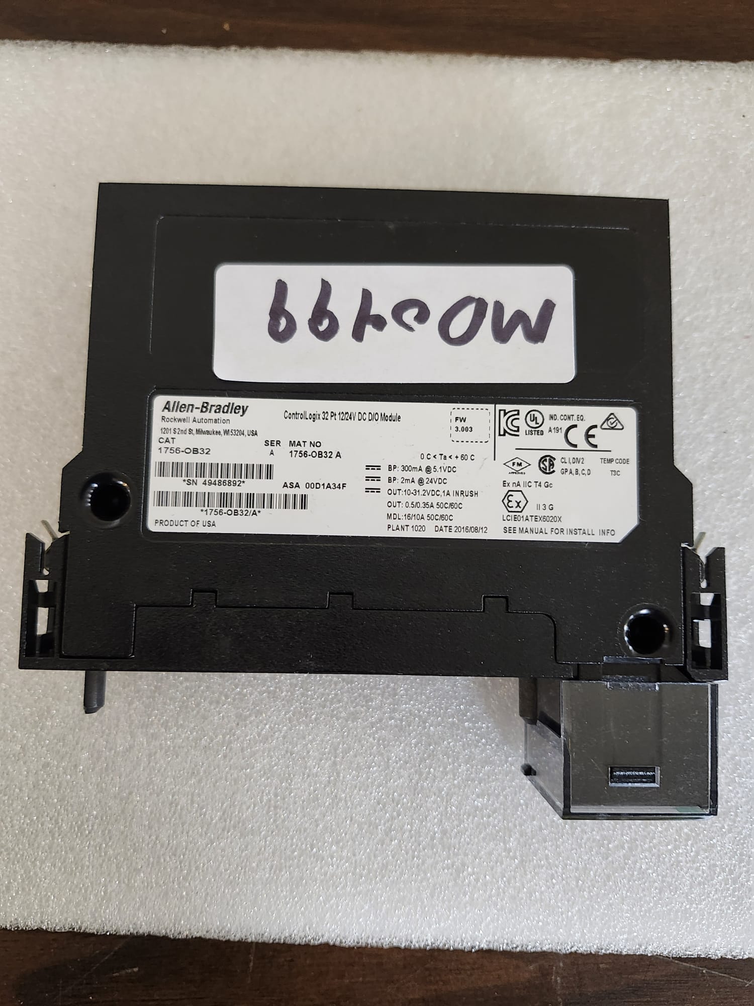 Consider the Allen-Bradley 1756-OB32 Output Module for your input/output needs. This is a ControlLogix digital I/O module offering 32 points of output connections at 10-31.2 Volts of DC power. There is no fusing on the module itself as the fused IFM is used to protect the outputs. Along those lines, the ControlLogix system is agency certified using only the ControlLogix RTBs, so be sure to couple your 1756-OB32 output module with an Allen-Bradley 1756-TBCH, 1756-TBNH, 1756-TBSH, or 1756-TBS6H for reliable and safe performance that meets industry standards. The 1756-OB32 module’s 32 pins are arrange in two rows, in two groups of 16 and linked with DC and RTN outs on the same daisy chains.