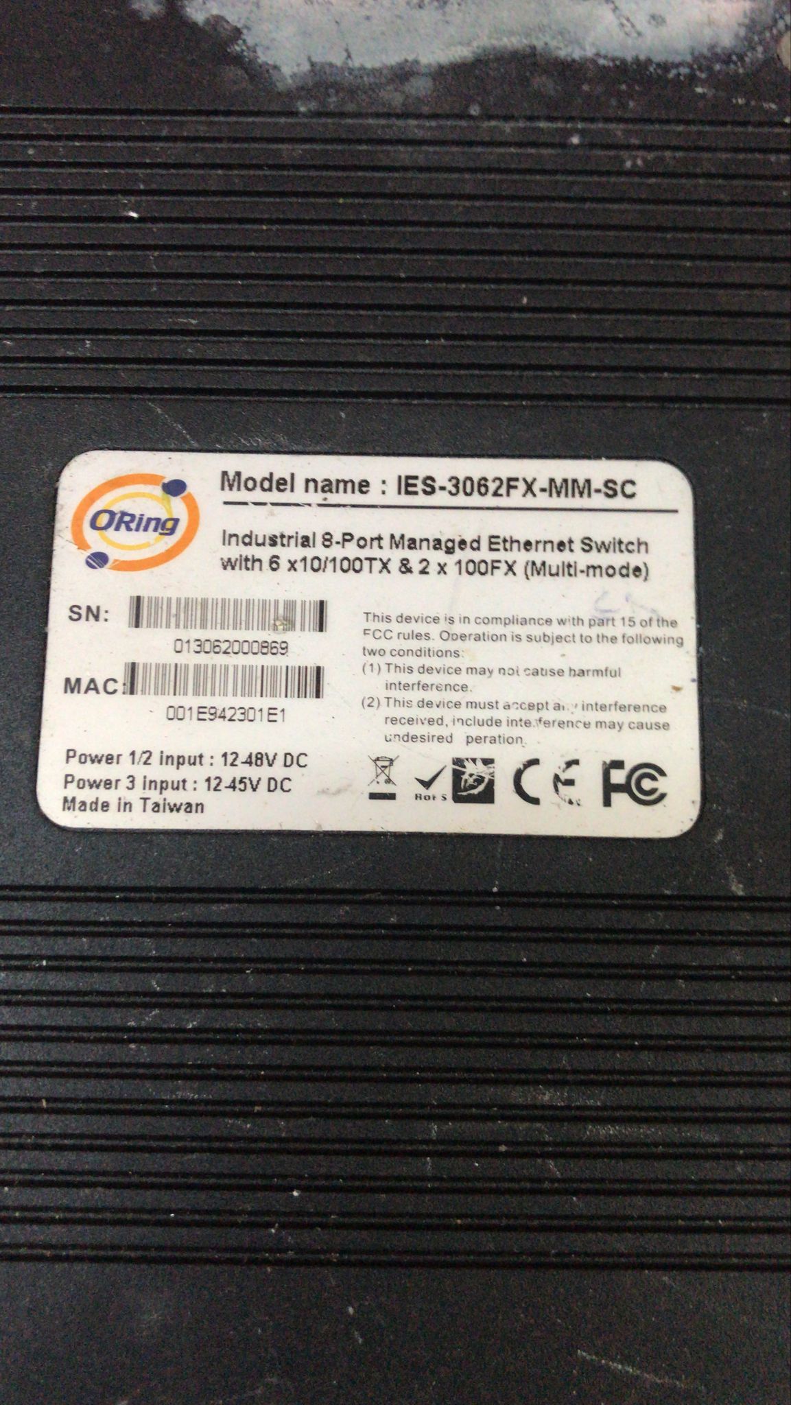 ORING IES-3062FX MM-SC 8-PORT MANAGED ETHERNET SWITCH